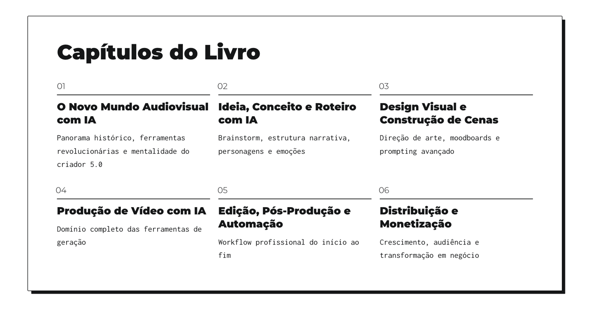 Este livro mergulha nas principais plataformas de inteligência artificial para criação de vídeos, como Sora 2, Runway, Midjourney e outras.